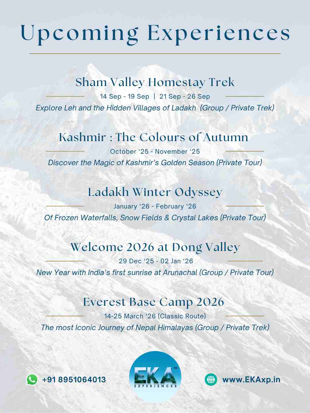 EKA™ is an experiential travel company offering guided journeys, curated trips and offbeat trekking adventures in some of the most extraordinary and unique places to visit in India and beyond. We curate immersive and fulfilling experiences away from crowded, touristy trails and design bespoke and personalized travel plans for you, your friends and family.